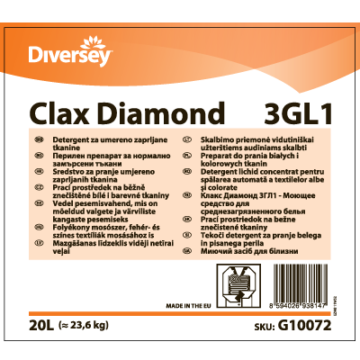 - Комплексное моющее щелочное средство для стирки в жесткой воде Clax Diamond 3GL1
