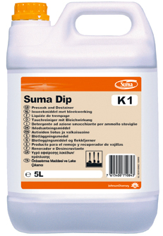 - Хлоросодержащее средство для замачивания и отбеливания посуды и столовых приборов Suma Dip K1