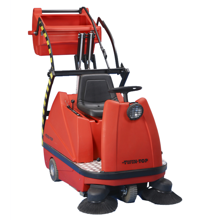 - Twin Top TTE 1100 HD – высокопроизводительный индустриальный подметальщик с приводом от АКБ, всасывающей системой, местом для оператора и активным пылеудалением для внутренних помещений площадью до 20000 м²;